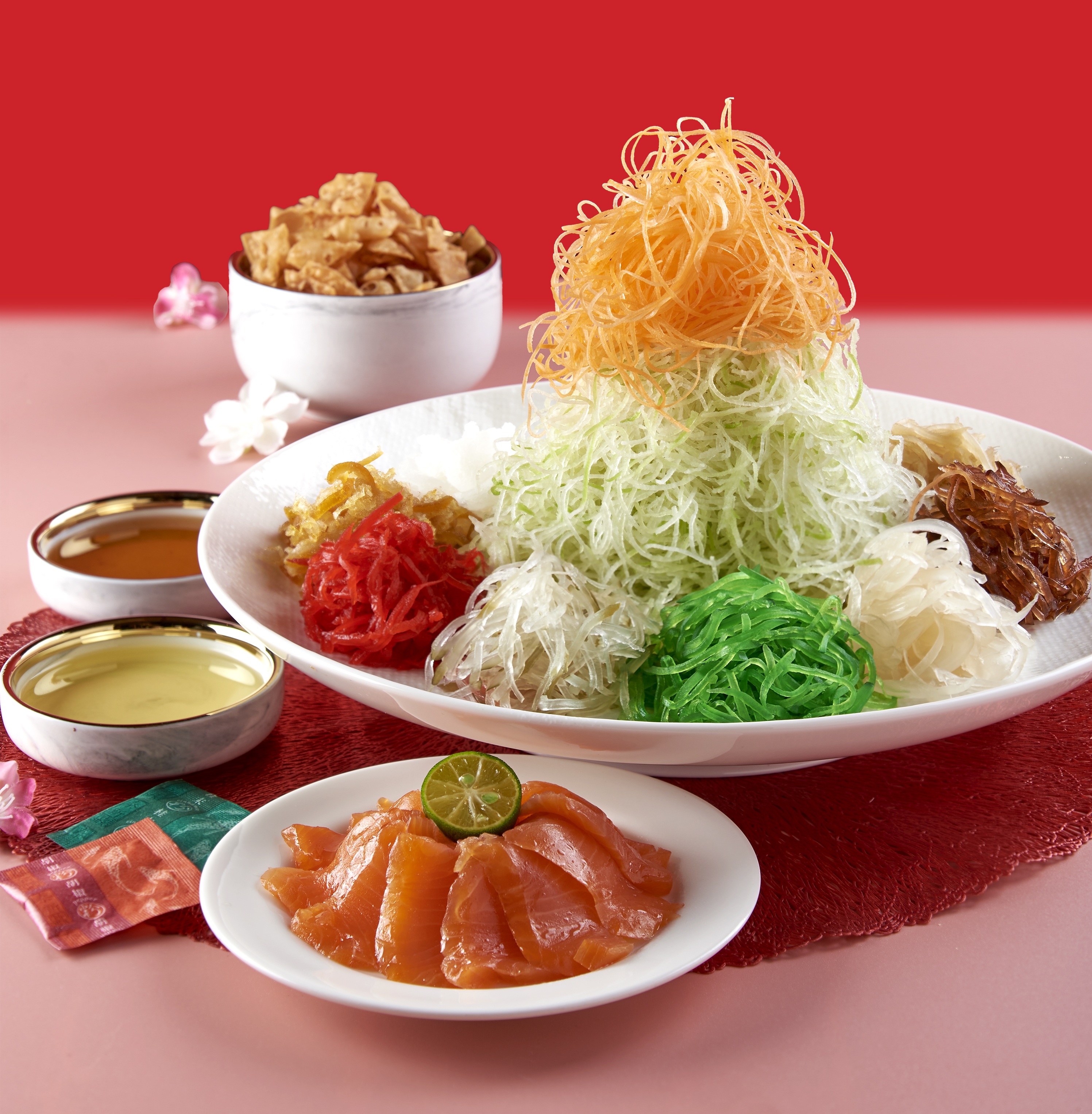 Inspired by tradition and crafted with quality ingredients, usher in prosperity with a selection of festive favourites. Designed for sharing, each dish is thoughtfully prepared to bring warmth and joy, making every reunion truly meaningful. Toss to prosperity, happiness, and togetherness with their Prosperity Yusheng, featuring ingredients symbolising abundance and good fortune.