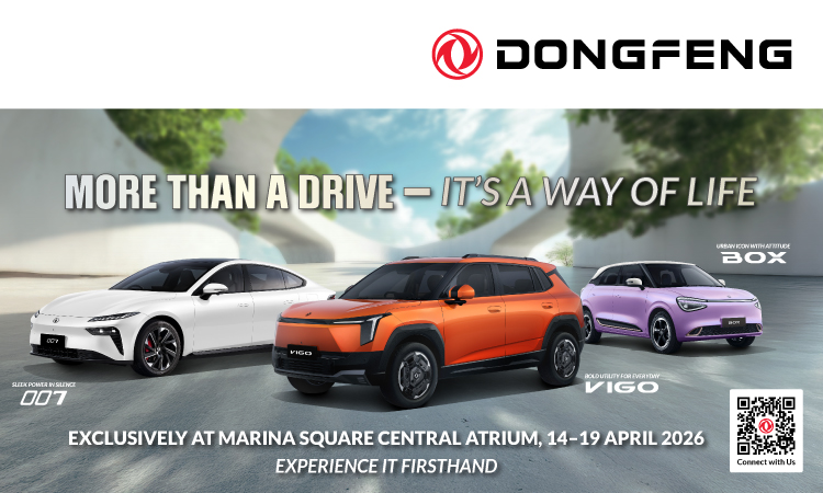 Step into the future with Dongfeng’s striking lineup featuring the All-New Vigo, 007 and Box at Marina Square, Level 2 Central Atrium, from April 14 to 19 April 2026. Enjoy exclusive roadshow offers and experience electric mobility redefined through intelligent technology, innovation, and performance.