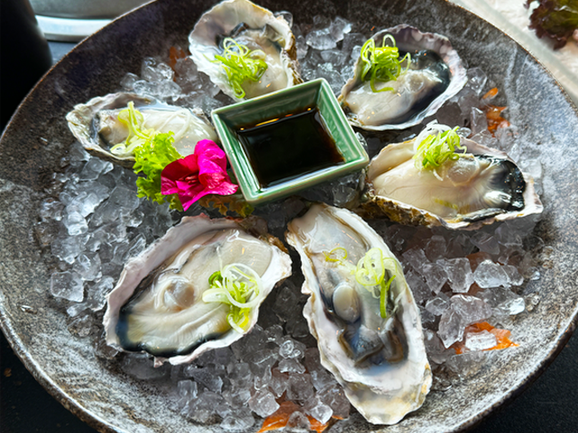 50% off Oyster Sashimi, Fresh Japanese Hyogo oyster with yuzu ponzu sauce.