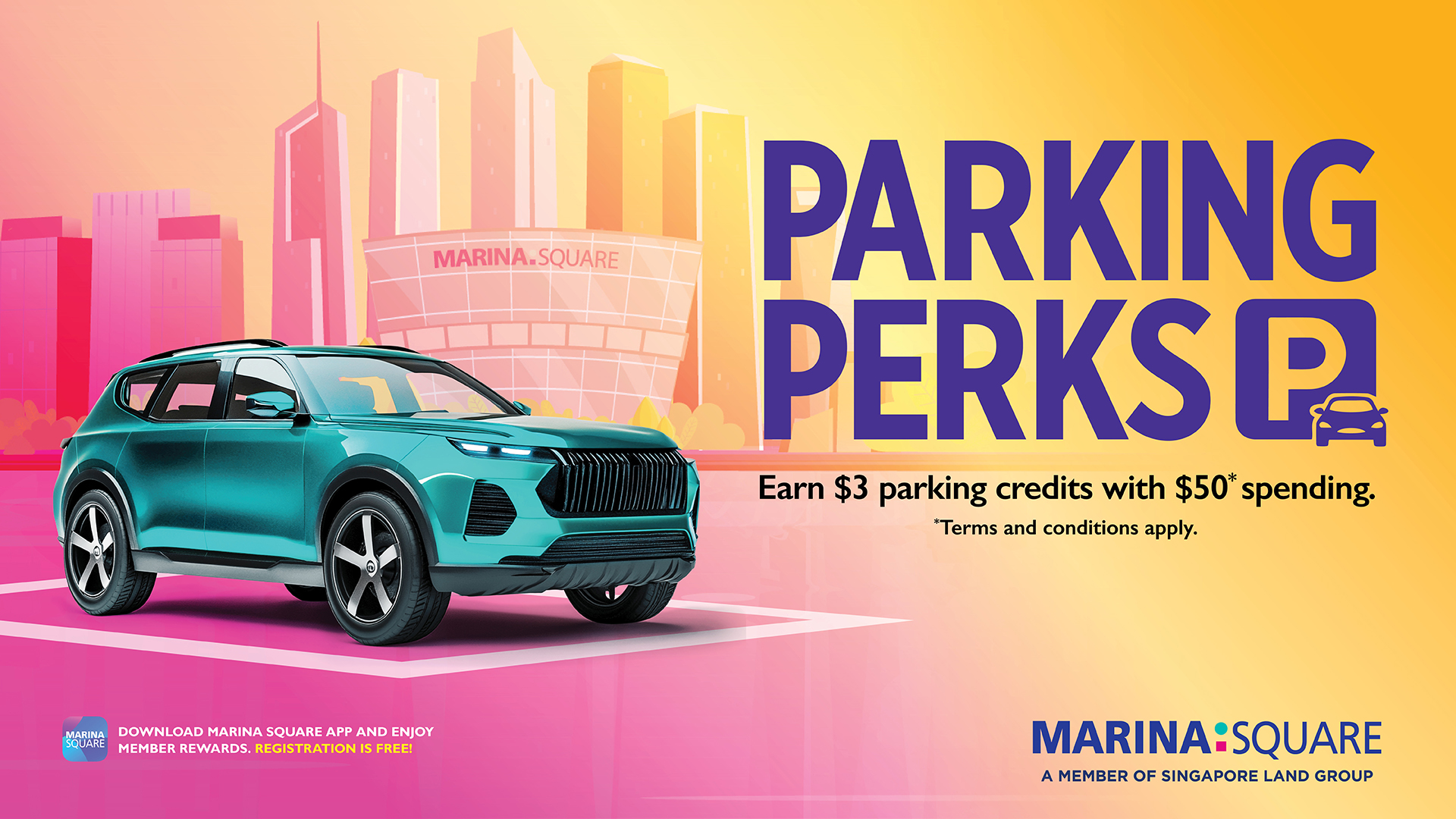 Spend a minimum of $50 at any outlet in Marina Square to receive a 3 Car Park Dollars (CP$) (equivalent to $3 in parking charges). While stocks last.