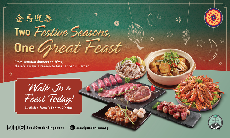 Celebrate Chinese New Year and Ramadan with a generous festive spread at Seoul Garden. From reunion dinners to Iftar gatherings, enjoy a selection of seasonal favourites and new highlights including Yu Sheng, Yabby, Teriyaki Lychee Chicken, Assam Jjigae Stingray and Squid — perfect for sharing and meaningful celebrations with family and friends.
